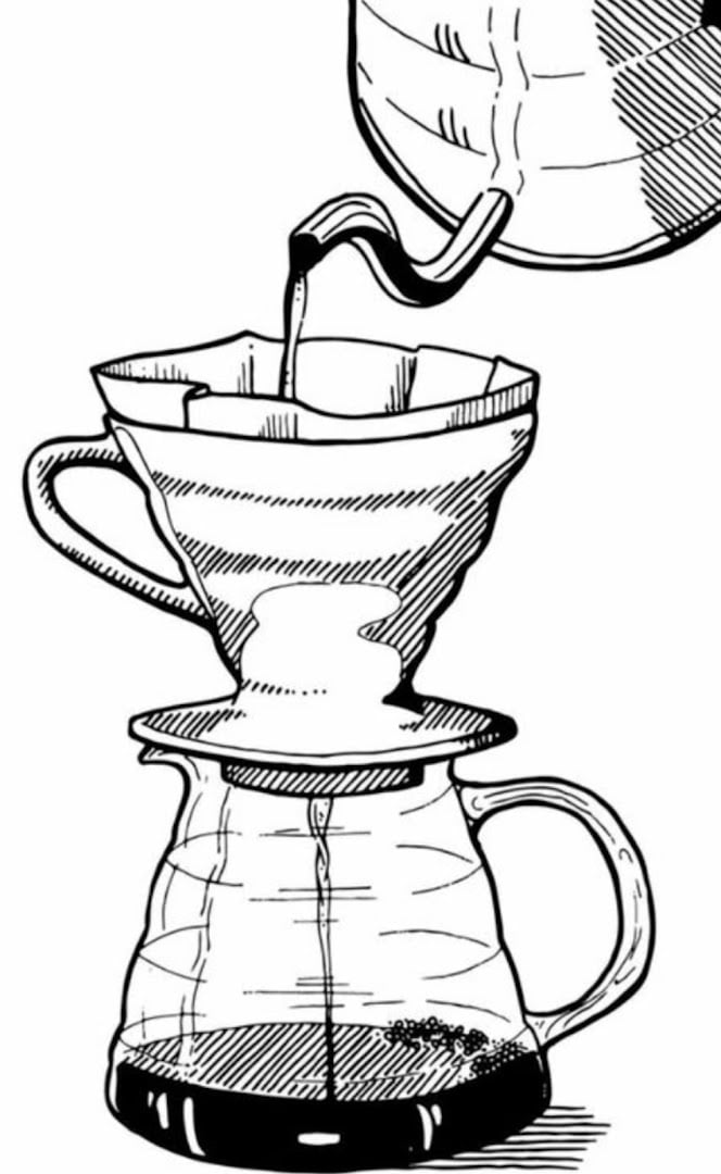 (pour over) kaffer i 3 niveauer og brygger både i '2 CUPS' (250 ml.) & '4 CUPS' (500 ml.)